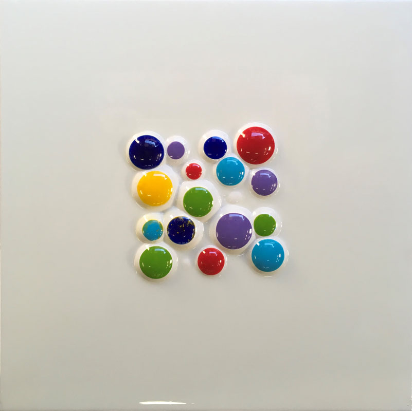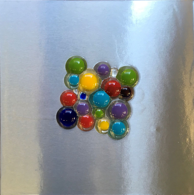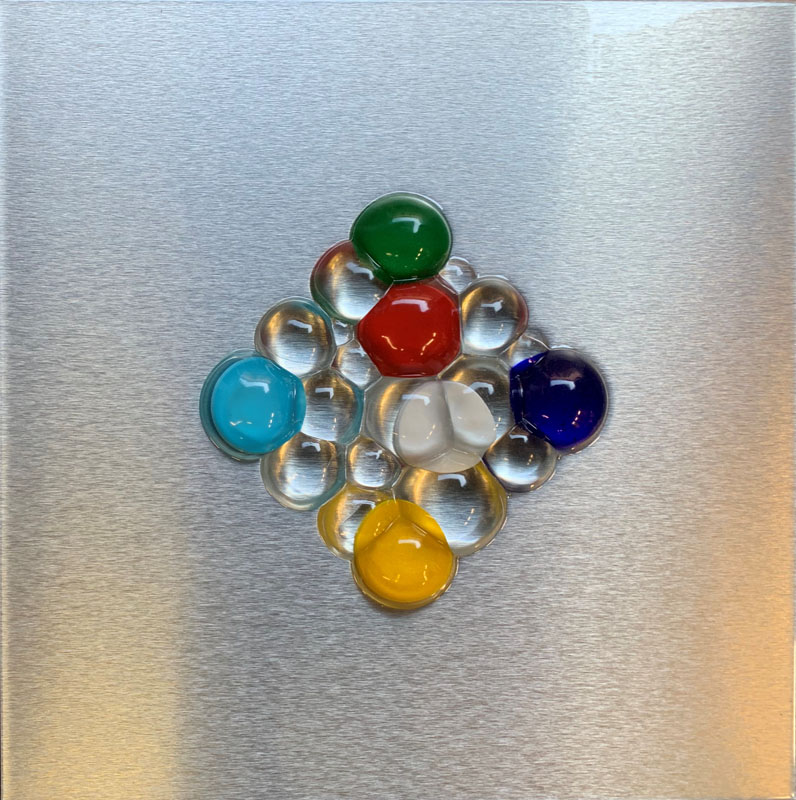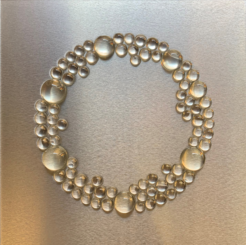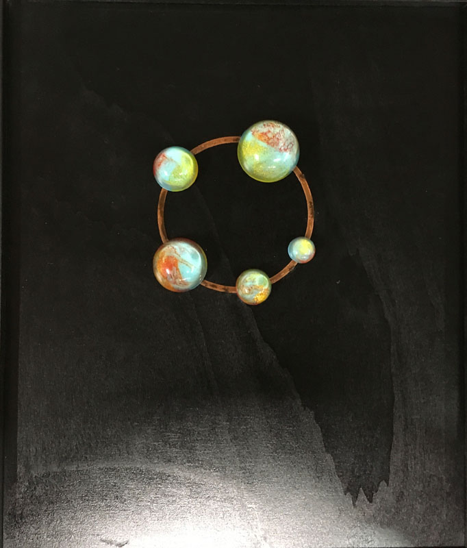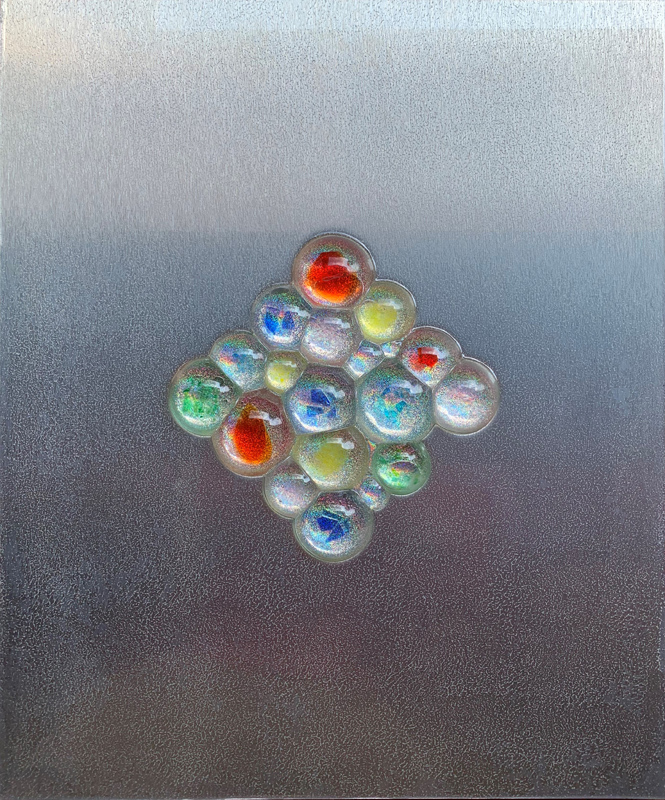 Nei miei lavori sento il bisogno di utilizzare le forme sferiche, non solo per conferire tridimensionalità scultorea all’ opera, ma per rappresentare l’ignoto che risiede nei globi di luce.